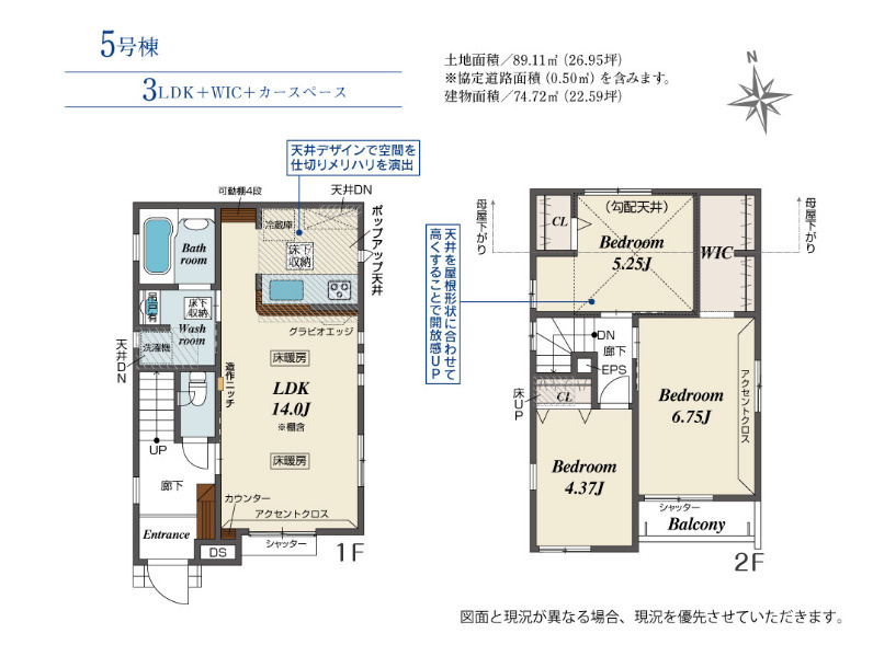 - 26.77坪~26.95坪(88.50㎡~89.11㎡)