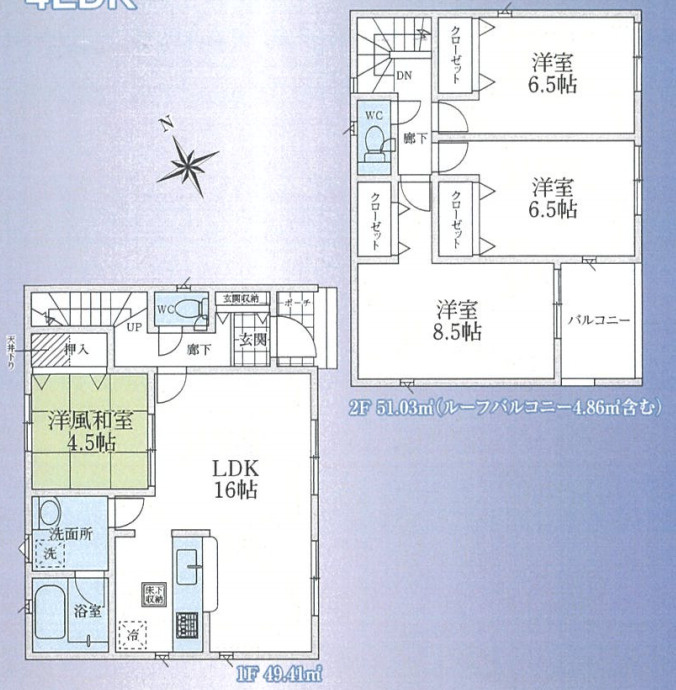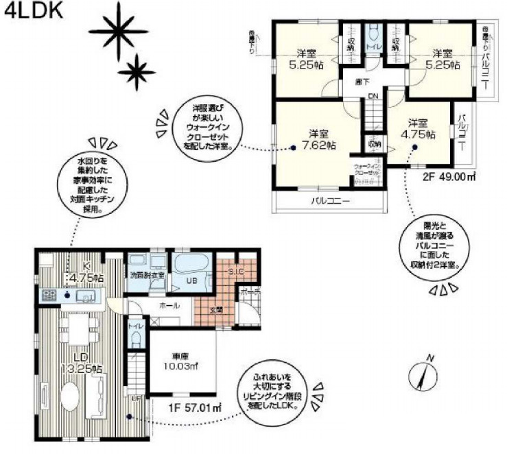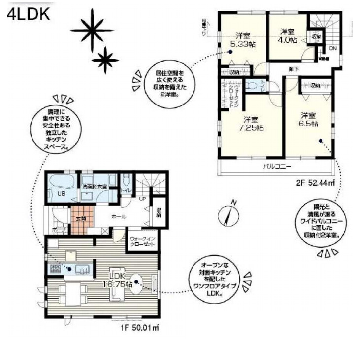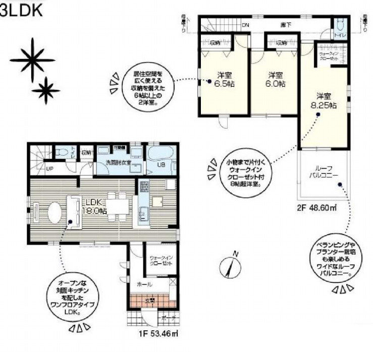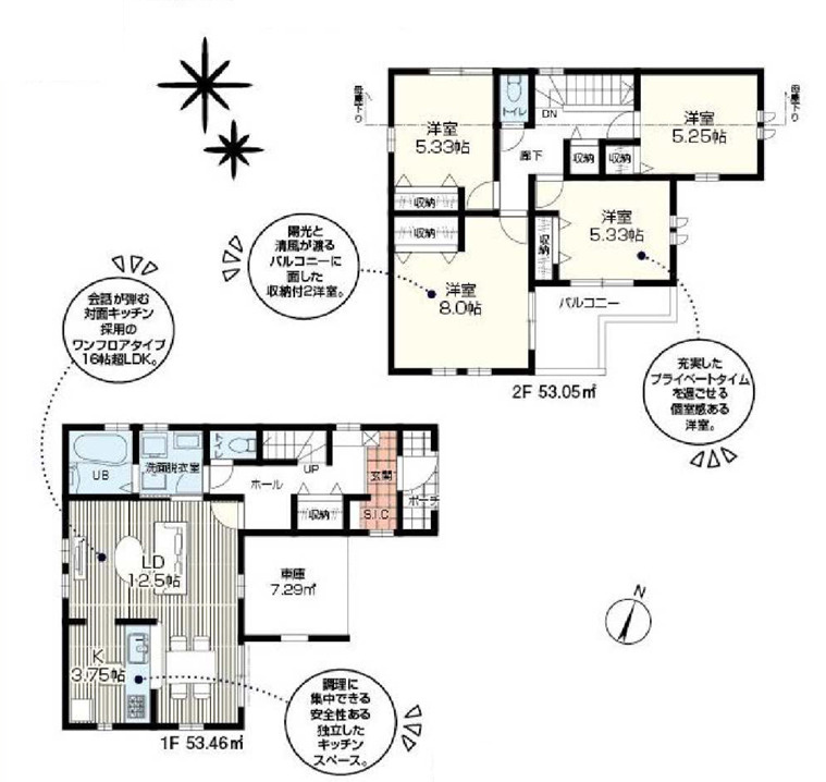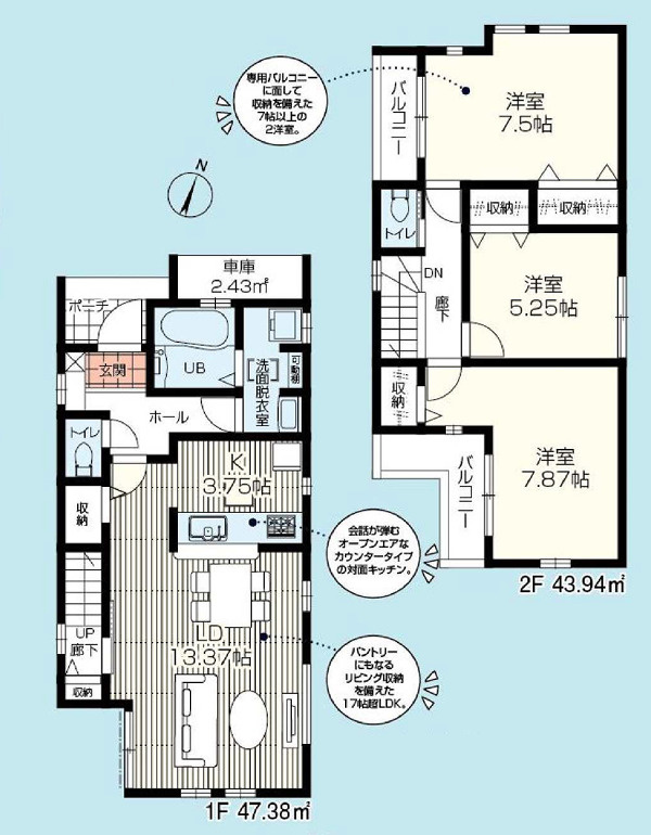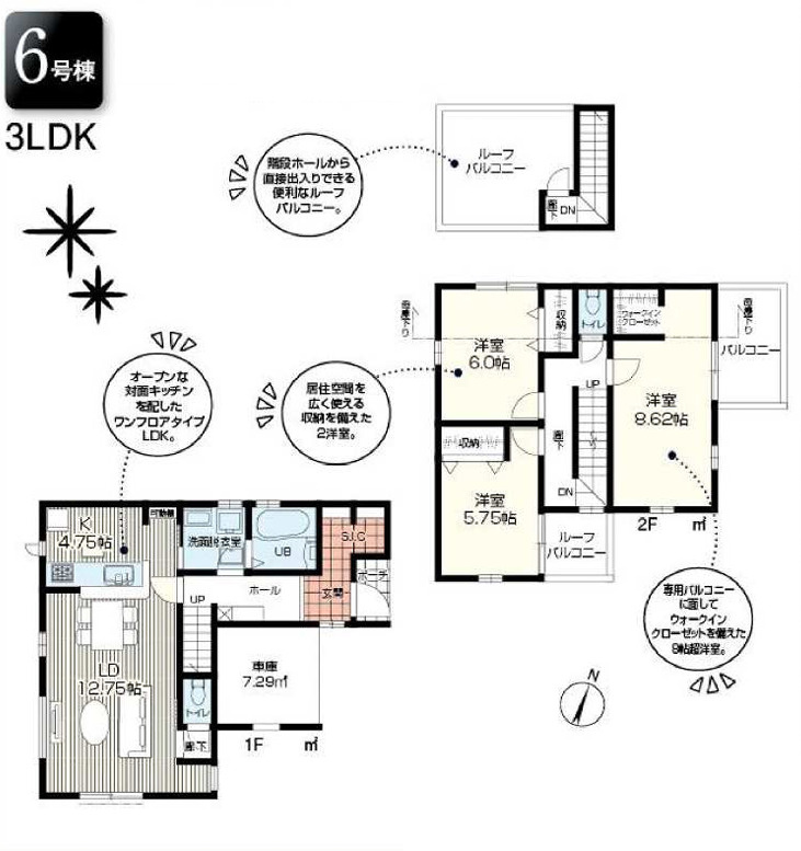 【区画図】駐車が苦手な方にも嬉しい前面6m道路に面した住まい